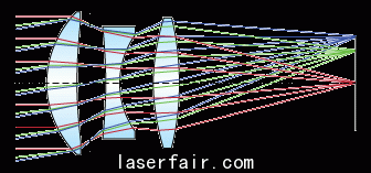 圖3,采用三片球麵透鏡,增大有效焦距,用於(yu) 消除球差。但是,一片非球麵透鏡(高數值孔徑,短焦距)就可以實現,並且簡化係統設計和提供光的透過率。