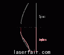圖 1,非球麵透鏡和球麵透鏡的表麵輪廓比對
