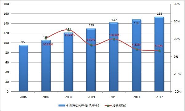 全球FPC總產(chan) 值走勢圖 (億(yi) 美元) 數據來源:VLSI Research