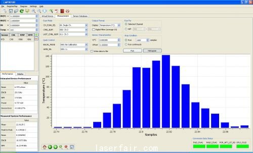 如果係統設計師有興(xing) 趣深入研究傳(chuan) 感器模擬前端電路的性能,他們(men) 可以購買(mai) 與(yu) 軟件配套的開發硬件。利用SPIO-4基於(yu) USB的數據采集板,所有配置均可輕鬆地在幾秒內(nei) 傳(chuan) 到傳(chuan) 感器模擬前端電路評估板上。隻要使用合適的開發硬件,係統設計師即可轉入測量選項卡,此時,他們(men) 可以對比實際測量的數據和估計的數據值。由於(yu) 一些傳(chuan) 感器模擬前端電路如LMP90100具有多路輸入,可以同時監測數個(ge) 傳(chuan) 感器。係統設計師也可以監測電壓、模數轉換器輸出情況或傳(chuan) 感器專(zhuan) 用性能指標(如溫度傳(chuan) 感器的攝氏或華氏溫度)等係統性能,利用傳(chuan) 感器數據庫中的數據,該開發工具為(wei) 用戶帶來這一功能。此外,其統計數據也可以涵蓋被收集的數據,所有數據可以采用模擬示波器截屏的時間域或柱狀圖的形式顯示。開發工具是傳(chuan) 感器模擬前端電路幫助係統設計師輕鬆完成其硬件開發而提供的另一選擇。