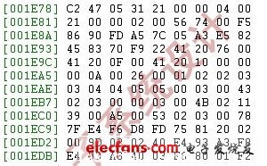 圖4:讀入DSP內(nei) 存的68013A固件程序數據(部分)。