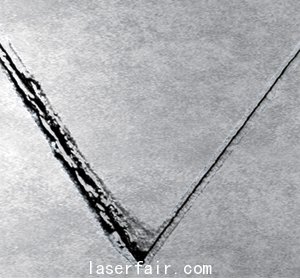 ![]() ![]() 由圓偏振光製作的切割痕跡十分清晰。 ![]() 由線性偏振光製作的切割痕跡呈鋸齒形。 |