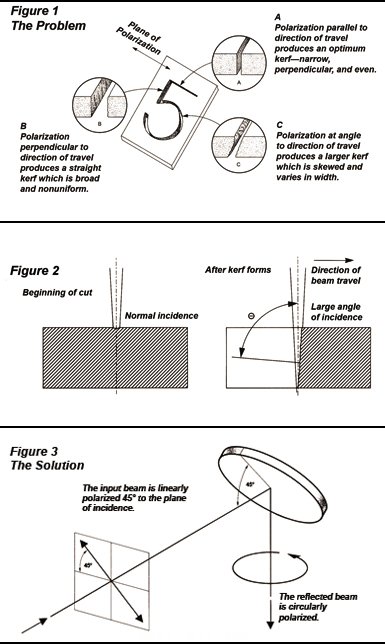 由圓偏振光製作的切割痕跡十分清晰。 由線性偏振光製作的切割痕跡呈鋸齒形。 反射式相位延遲鏡 金屬切割和其他重要的激光加工對切縫寬度或橫截麵發生的任何變化都很敏感...