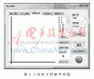 這5個(ge) 模塊被設計在一個(ge) Windows窗體(ti) 中,不同功能設計在不同選項卡中,因此隻需切換選項卡就可以輕鬆實現功能的切換。在窗體(ti) 的右側(ce) 有一列獨立於(yu) 選項卡容器的對象,其功能是對串口通信進行設置,控製FPGA執行的起停以及對監視功能進行複位。上位機主控軟件視圖如圖3所示。