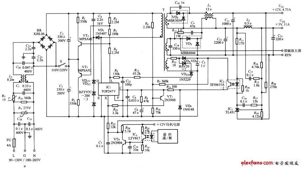 4 145W多路輸出式PC開關(guan) 電源的主電路設計