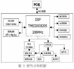 如圖1所示為(wei) 係統的硬件結構框圖。DSP控製板卡通過PCI總線與(yu) PC機連接,實現高速通信。DSP處理模塊為(wei) 主控製模塊,使用主頻為(wei) 200MHz的 TMS320C6205芯片作為(wei) 主控製芯片。DSP處理模塊充分利用了C6000係列DSP的快速計算能力和高精度定時器,能夠保證振鏡標記機進行勻速、高速標記,這些由PC機是沒有辦法做到的。DSP的外圍電路包括存儲(chu) 模塊、複位控製、電源控製、時鍾係統、JTAG端口、數模轉換模塊、CPLD邏輯控製模塊和光電隔離模塊等。其中存儲(chu) 模塊包括FLASH模塊和SDRAM模塊,FLASH用來存儲(chu) 係統啟動代碼和軟件代碼,SDRAM用於(yu) 提供軟件運行時所需的額外存儲(chu) 空間。DSP控製板卡輸出兩(liang) 路模擬量控製兩(liang) 塊振鏡的運動,輸出Q開關(guan) 控製信號以控製激光器的開關(guan) 光,輸入/輸出16路光電隔離信號用於(yu) 功能擴展。