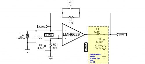 1 在開始頻率響應仿真前,請確保將輸入電流源(在光電二極管位置)設定為(wei) AC 0”