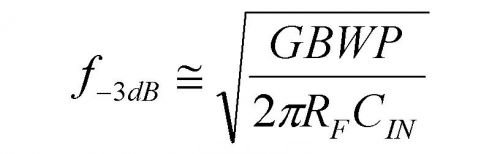 測量的結果證實是可靠的,準確補償(chang) 了70MHz的帶寬情況,符合方程式1中的理論值,該方程式中CIN是總的反向輸入電容值(包括二極管和運算放大器)。