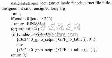 利用應用程序傳(chuan) 遞給stepper ioct1的參數arg來判斷轉動方向。編寫(xie) ioctl函數用來接收應用程序對於(yu) 步進電機的控製。以下是部分驅動程序代碼: