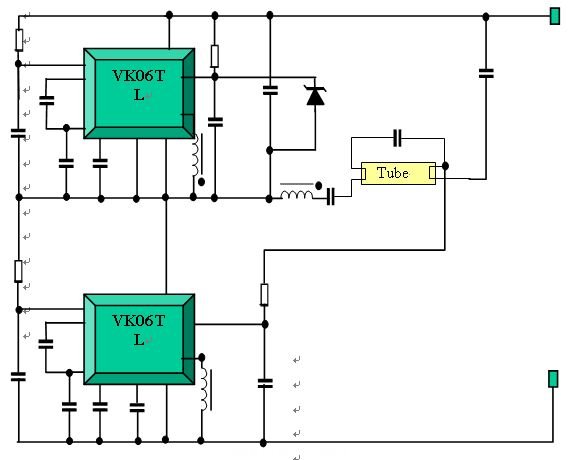在圖1的變換器半橋中,VK06TL被指定用於(yu) 上橋臂和下橋臂,因為(wei) 采用兩(liang) 個(ge) VK06TL,幾乎無需外部器件,隻用兩(liang) 個(ge) 二次繞組就可以導通一次側(ce) 扼流圈,所以,設計一個(ge) 效率極高而成本極低的熒光燈變換器是可行的。