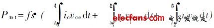 在晶體(ti) 管導通後, 集電極電流從(cong) 0逐漸變大, 而Vcesat不為(wei) 0, 因此產(chan) 生通態損耗。通態損耗可以表示為(wei) :