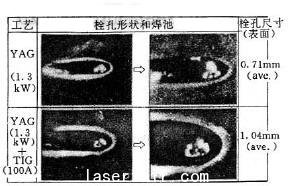 對這一過程中的TIG弧光和YAG激光光束的相互作用進行了研究,研究結果認為(wei) 弧光及光圈光束吸收可以忽略。圖16示出高速混合焊接時的弧光穩定性與(yu) 僅(jin) 用TIG焊接的比較結果。