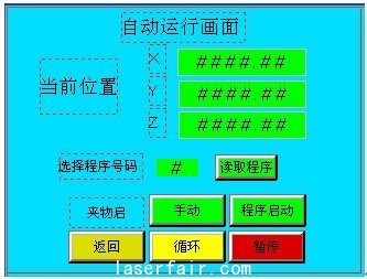 如上圖,“夾物啟”位置就是顯示目前程序所執行的步驟,本界麵也可以通過讀取程序按鍵來選取工藝程序。目前該程序在設備上運行穩定,用戶滿意。已經將原有PLC編寫(xie) 的程序完全替換掉。