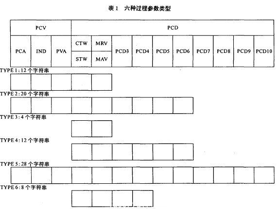 其中,PCA為(wei) 參數特征;IND表示索引;PVA表示參數變量;CTW 為(wei) 控製字;sTw 為(wei) 狀態字;MRV表示主要參考變量;MAV表示主要實際變量(實際輸出頻率);PCD表示參數過程數據。