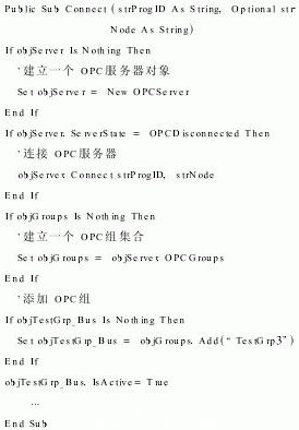 OPC數據訪問方法主要有同步訪問、異步訪問和訂閱方式數據采集。對於(yu) 異步訪問,OPC服務器接到OPC應用程序要求後,幾乎立即將方法還回,OPC應用程序不必處於(yu) 等待狀態,可以處理其他任務。當OPC服務器完成數據訪問時,觸發OPC應用程序的異步訪問完成事件,OPC應用程序在的VB 事件處理程序中接受從(cong) OPC服務器傳(chuan) 輸過來的數據;對於(yu) 訂閱方式數據采集,OPC服務器也是通過觸發事件方式傳(chuan) 輸數據到OPC應用程序。