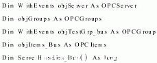 包括OPCServer對象、OPCGroups對象、OPCGruop對象、OPCItems對象和保存OPC標簽的服務器句柄的數組SeverHandles_Bus()。聲明如下: