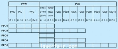 用於(yu) 讀寫(xie) 參數,讀出故障信息等。pkw和pzd共有五種結構形式即:ppo1、ppo2、ppo3、ppo4、ppo5,其傳(chuan) 輸的字節長度及結構形式各不相同。根據自動化網絡中傳(chuan) 動裝置的任務不同,在plc和變頻器通訊方式配置時要對ppo進行選擇。在結晶器調寬交流伺服控製係統中采用了 ppo5型通訊報文,它的報文結構如圖4所示。圖4中符號的意義(yi) 如下: