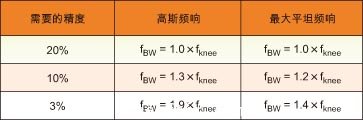 表1:根據需要的精度和示波器頻率響應的類型計算示波器所需帶寬的係數