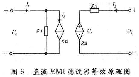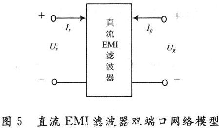 直流EMI濾波器雙端口網絡模型如圖5所示,其混合參數方程為(wei) :