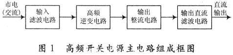 高頻開關(guan) 電源主電路組成框圖如圖1所示,它由輸入濾波電路、高頻逆變電路、輸出整流電路及輸出直流濾波電路等組成。