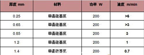 下表展現了光纖激光器切割矽的能力。