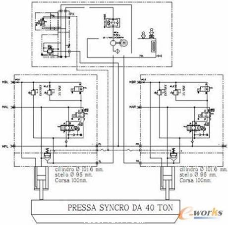 典型中央控製閥型式液壓係統圖如下: