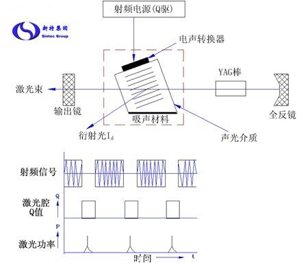 聲光Q開關(guan) 是利用聲光相互作用以控製光腔損耗的Q開關(guan) 技術。聲光調Q是通過電聲轉換形成超聲波使調製介質折射率發生周期性變化, 對入射光起衍射作用, 使之發生衍射損耗,Q值下降, 激光振蕩不能形成。在光泵激勵下其上能級反轉粒子數不斷積累並達到飽和值, 之後突然撤除超聲場, 衍射效應立即消失, 腔內(nei) Q值猛增, 激光振蕩迅速恢複, 其能量以巨脈衝(chong) 形式輸出。這是一種廣泛應用的Q開關(guan) 方式,其主要優(you) 點是重複頻率高,性能穩定可靠。