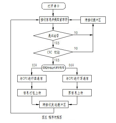 ASCII模塊支持BASIC語言編程,此外,又附加了多條係統及函數指令,如接收、發送緩衝(chong) 區操作指令、信息傳(chuan) 輸差錯控製CRC、LRC校驗函數指令和與(yu) CPU單元數據交換的讀寫(xie) 指令等。編程使用WINDOWS操作係統上附帶的Hyperterminal(超級終端)軟件,通過此軟件,PC機可與(yu) 連接在網絡上的其它PC機或串口終端設備進行文本文件的傳(chuan) 輸及顯示。編程時,將PC機串口與(yu) ASCII模塊的RS232串口連接,運行該軟件,就能在其界麵上對ASCII模塊進行程序編寫(xie) 、上傳(chuan) 、下載和調試等工作。也可先通過WINDOWS係統的寫(xie) 字板編寫(xie) 程序,並保存為(wei) 文本格式,然後再通過Hyperterminal將程序下載到ASCII模塊。通信程序的主工作流程見圖五。