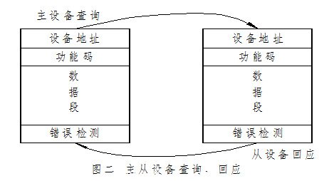 Modbus協議是一種適用於(yu) 工業(ye) 控製領域的主從(cong) 式串口通訊協議,它采用查詢通訊方式進行主從(cong) 設備的信息傳(chuan) 輸,可尋址1-247個(ge) 設備地址範圍。協議包括廣播查詢和單獨設備查詢兩(liang) 種方式,二者區別就是廣播查詢不需要從(cong) 設備回應信息,主從(cong) 設備查詢通訊過程見圖二。