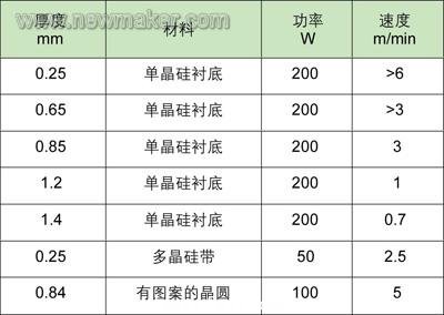 SPI公司最近發明了一種能獲得超高切割質量的高速晶圓切割方法。用200W連續光纖激光器在200μm (0.008”)厚的多晶矽上以10m/min的速度切割,可以獲得相當平滑的、沒有任何裂紋的切割邊緣 ,以及寬度40μm的非常平行的無裂紋切口。即使在晶圓厚度達1.2mm(0. 05”)時,仍能以超過1m/min的速度實現超高質量切割,能與(yu) 現有的其他切割方法相匹敵。表1中的數據表明了光纖激光器在矽晶圓切割應用中的競爭(zheng) 性優(you) 勢。