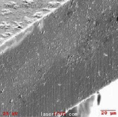 目前,SPI正在為(wei) 該加工方法申請專(zhuan) 利。該方法可以實現優(you) 異的切割邊緣質量,圖1顯示了用50W連續光纖激光器獲得的切割質量。甚至在切割有圖案的晶圓時,也能獲得高質量的頂部邊緣,無任何裂紋顯示(見圖2)。這種新的切割方法也可以像現有的金剛石割鋸技術一樣加工出平直的形狀。