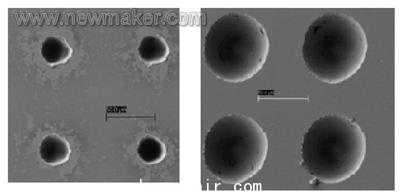 圖5:用20W脈衝(chong) 激光器在矽片上打出的盲孔。