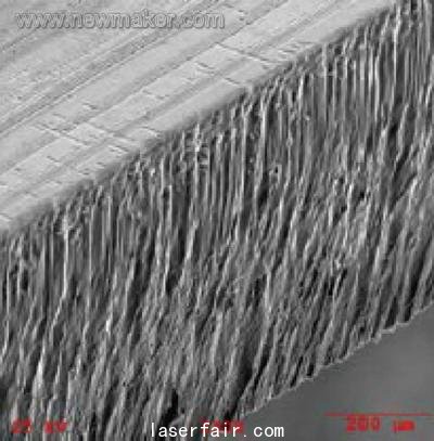 圖1:50W連續激光器切割250µm 厚矽帶,切割速度為(wei) 2.5m/min。