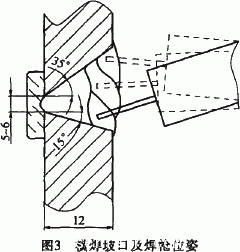 b. 橫焊。坡口選用不對稱"v"型坡口,具體(ti) 坡口形式及尺寸如圖3 所示。焊前需處理坡口表麵。