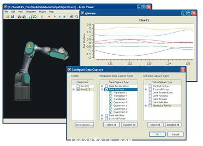 Actin使用內(nei) 置的控製軟件或用戶自己開發的控製軟件可以提供強大的模擬功能。Actin輸入可為(wei) CAD格式和SolidWorks的格式。可以捕獲CAD模型的物理性質用於(yu) 高保真的物理特性分析。通過豐(feng) 富的建模和分析技術,Actin將問題解決(jue) 在最初階段從(cong) 而節省時間和精力。Actin還可以評估一個(ge) 機器人解決(jue) 新的問題或應用於(yu) 新的環境中的能力。