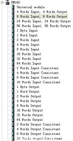 將PM-160添加到STEP7的組態頁麵後,可以插入相應的數據塊進行映像區地址映射。PM-160提供的數據塊如下: