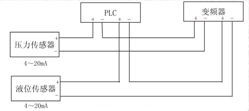 對於(yu) 傳(chuan) 感器輸出的電流信號,隻經PLC和變頻器的輸入阻抗之和不大於(yu) 傳(chuan) 感器的輸出負載阻抗即可,壓力傳(chuan) 感器的信號可以同時串入PLC和變頻器,如隻有壓力傳(chuan) 感器信號,則PLC和變頻器也都可以正常接收壓力傳(chuan) 感器的信號。而當液位傳(chuan) 感器的信號也同時接入PLC和變頻器時,因PLC接收信號的-端都在變頻器的+端,當兩(liang) 傳(chuan) 感器的信號電流不一樣時,就有可能使PLC兩(liang) -端的電位有較大的差異,就就形成了共模幹擾電壓。如PLC輸入端又互相不是隔離的,則會(hui) 造成PLC的模擬信號輸入端接收不正常。變頻器的兩(liang) 輸入信號是在PLC的後麵,其-端電位可保持在變頻器內(nei) 部電路設定的狀態,問題不大。