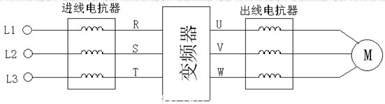 變頻器輸出側(ce) 安裝輸出電抗器,減少電纜的電磁輻射和位移電流;