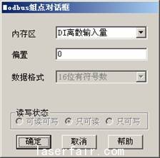 從(cong) 該屬性的設備列表框中選擇在上一步驟中建立的設備(如:MOD),點擊“增加連接項”按鈕,進入“Modbus組點對話框”: