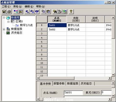 進入紫金橋開發環境,將導航樹切換到“數據庫”,在導航樹上雙擊“點組態”,進入點組窗口: