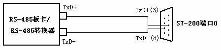 S7-200通訊端口(端口0)與(yu) RS-485板卡或RS-485/RS-232轉換器之間接線,如下圖所示: