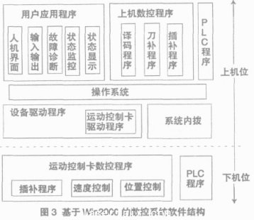 根據數控係統的要求, 同時參照 Windows 2000 操作係統結構, 在編程語言方麵采用 Visual C++作為(wei) 開發工具, 基於(yu) 的數控係統的軟件係統體(ti) 係結構如圖 3 所示。