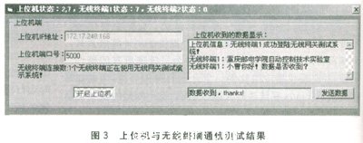 ——-192.168.6.100 ping statistics—— -4 packets transmitted,4 packets received,0% packet loss round— trip min/avg/max=1.4/1.5/1.8 ms上位機與無線終端通信的測試結果如圖3所示。