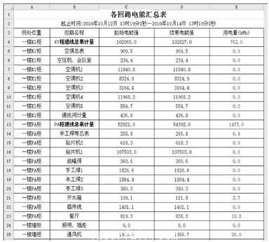 圖11所示為(wei) 一段時間內(nei) 的進線回路各項參數的具體(ti) 數值,它詳細地記錄了進線回路三相電壓、電流、有功電能、無功能電能、功率因素、頻率參數。整個(ge) 廠區各回路電能匯總如圖12所示,它記錄了一段時間內(nei) 各個(ge) 回路的耗電情況,包括各回路進行櫃的總電能及分支電能。