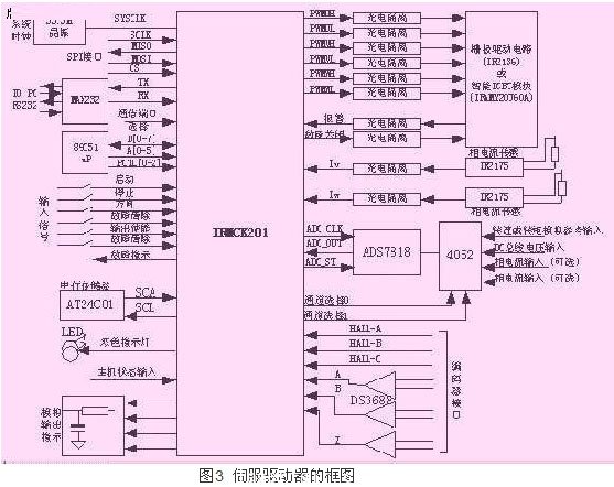 圖3示出通過普通單片機實現的一個(ge) 基於(yu) IRMCK201芯片的伺服驅動器的框圖。#p#分頁標題#e#