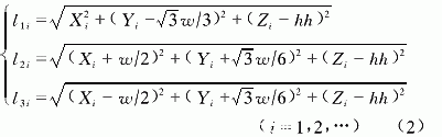 式中w為(wei) 固定平台與(yu) 活動平台邊長之差,hh為(wei) 刀尖到運動平台中心的距離。