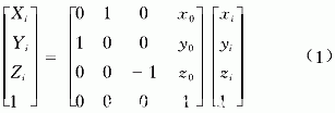 (5)坐標變換與(yu) 運動學變換 插補模塊將上述NC代碼數據進行離散,得到造型坐標係中刀尖坐標數據[xi yi zi]T(i=1,2,…)。通過插補得到的數據僅(jin) 是在造型坐標係中的坐標,為(wei) 了控製虛擬軸機床,必須進行坐標變換,以得到機床坐標係O-XYZ中的坐標[Xi Yi Zi]T(i=1,2,…)為(wei)