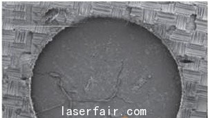 與(yu) 使用Nd:YAG激光器鑽出的孔相比,激光螺旋狀鑽孔的熱損害要少一些,表麵的邊緣質量看上去好一些。頂部表麵的回燒量隻有幾十微米。