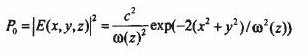 式中Po為(wei) 激光的總功率,ω(z)為(wei) 按強度1/e2所定義(yi) 的束腰半徑,對於(yu) 高斯光束場並不局限在束腰半徑範圍內(nei) ,理論上它橫向延伸到無窮遠,隻是大於(yu) 束腰半徑的區域內(nei) 光強很弱。