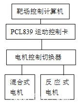靶場控製計算機通過PCL839運動控製卡將控製信號分解,傳(chuan) 輸給電機控製切換器(自行研製),電機控製切換器細分控製信號(地址信號和脈衝(chong) 數),然後將電平信號以及相應的脈衝(chong) 數送到目的電機,以驅動電機。
